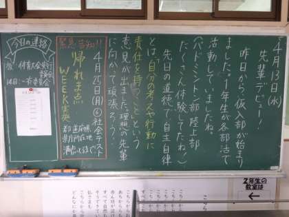学年掲示板。前向きな姿勢(1年)先輩デビュー(2年)