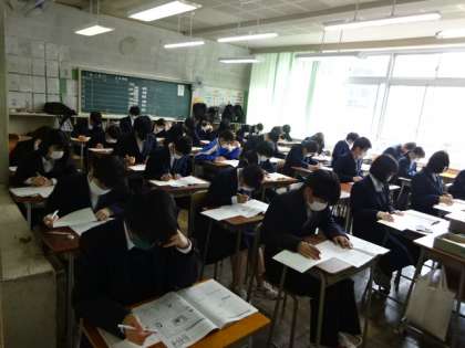 今日は3年生が全国学力・学習状況調査を受けています。ガンバレ!