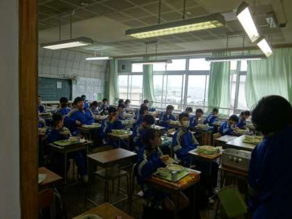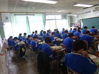 給食の時間の様子です。今日のメニューはビビンバ。2年生。