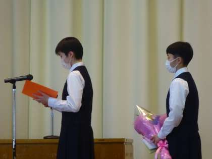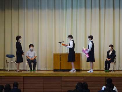 今日の離任式に3名の先生方がいらっしゃいました。離任式の様子です。