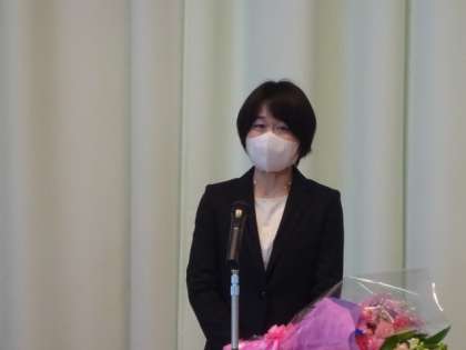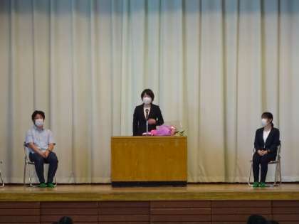 今日の離任式に3名の先生方がいらっしゃいました。離任式の様子です。