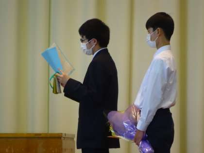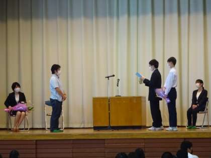 今日の離任式に3名の先生方がいらっしゃいました。離任式の様子です。