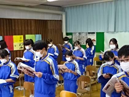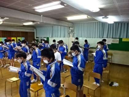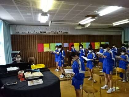 2年4組、音楽。新しいクラスの仲間と声を合わせよう。