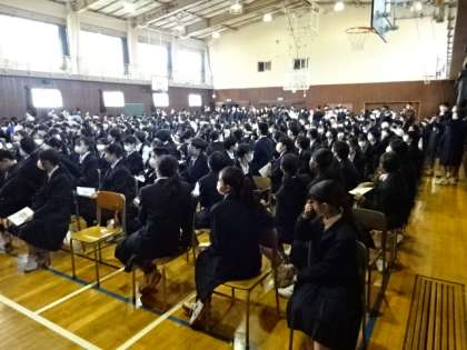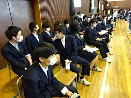 5時間目の生徒総会の様子です。全校生徒が集まって総会を行うのは令和元年度以来です。