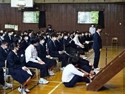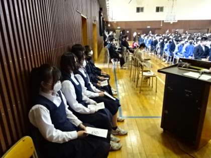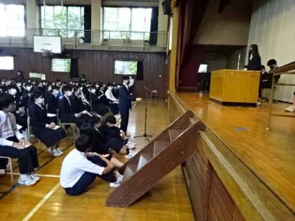 今日の生徒総会の様子です。分かりやすい方針の説明、的確な質問と答弁。何よりも、集中して見て聞いている生徒の姿勢が素敵でした。
