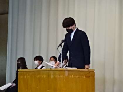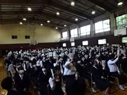 今日の生徒総会の様子です。分かりやすい方針の説明、的確な質問と答弁。何よりも、集中して見て聞いている生徒の姿勢が素敵でした。