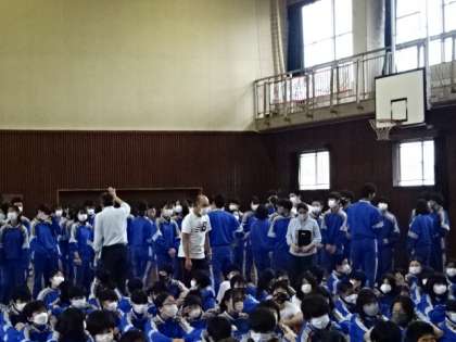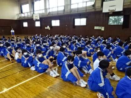体育館に全校生徒が集まって行う生徒会朝礼は、約3年ぶりです。ということは全校生徒にとって初めての生徒会朝礼ということでした。しかし、案ずるより産むが易し。生徒の力で立派に行ってくれました。