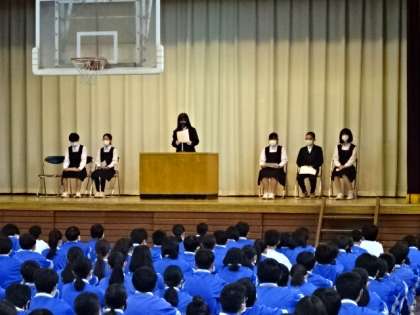 体育館に全校生徒が集まって行う生徒会朝礼は、約3年ぶりです。ということは全校生徒にとって初めての生徒会朝礼ということでした。しかし、案ずるより産むが易し。生徒の力で立派に行ってくれました。