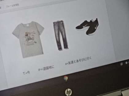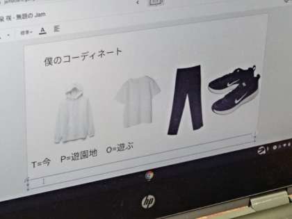 2年3組、家庭科。T.P.Oに合ったコーディネートを考えよう。