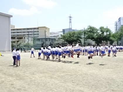体育大会に向けた学年練習が今日から始まりました。2年2組。