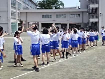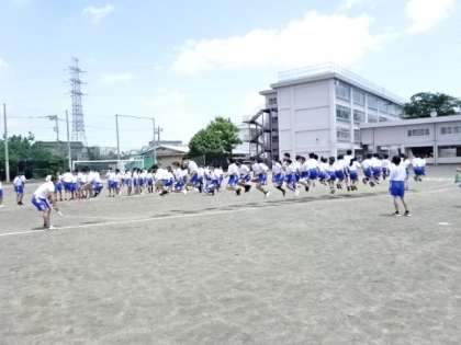 体育大会に向けた学年練習が今日から始まりました。2年3組。
