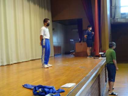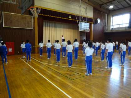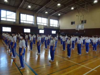 3年生の学年練習の様子です。行進もラジオ体操もしっかりやります。