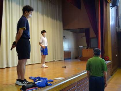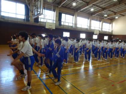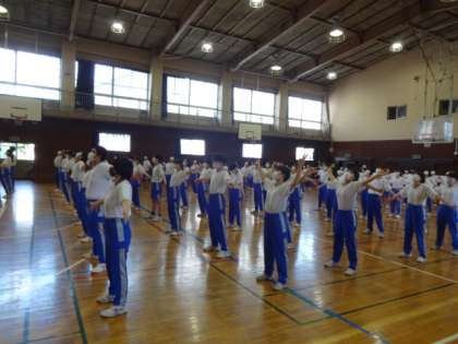 3年生の学年練習の様子です。行進もラジオ体操もしっかりやります。