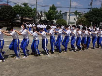 3年生の学年練習の様子です。「大むかで」もしっかりやります。