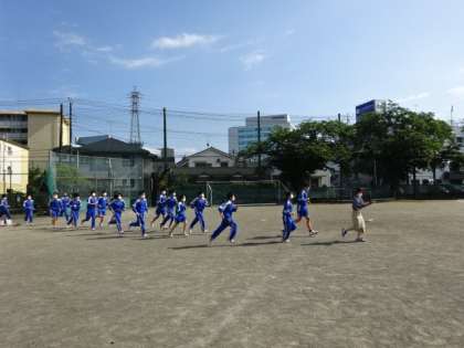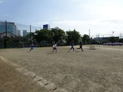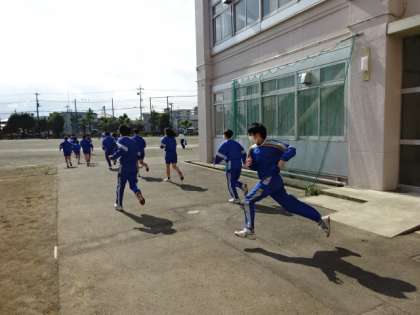 地震想定の避難訓練を行いました。外に出たら走って集合場所へ。