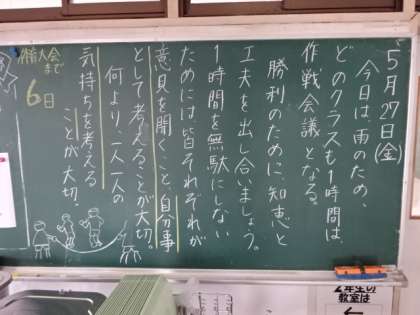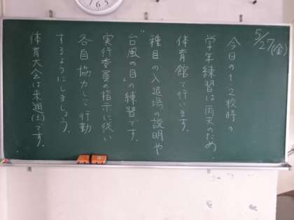 学年掲示板。台風の目(1年)気持ちを考えること(2年)しっかり取り組みましょう(3年)