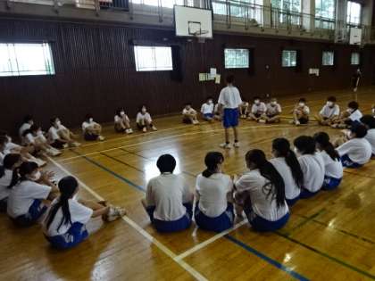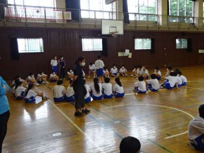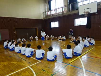1年生の学年練習の様子です。雨のために半分ずつ体育館で行いました。