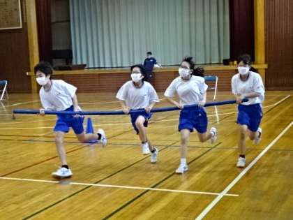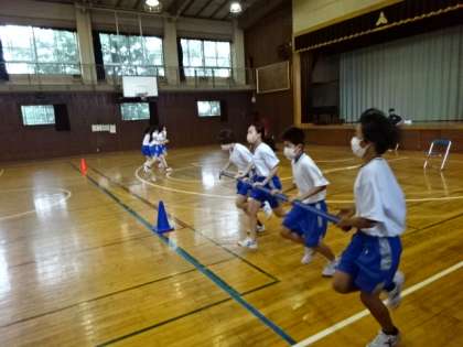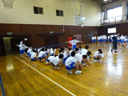 1年生の学年練習の様子です。雨のために半分ずつ体育館で行いました。