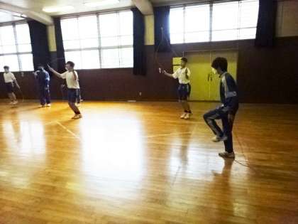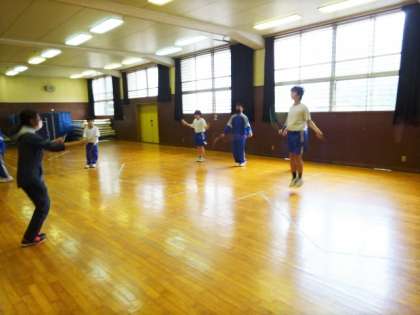 7組、体育。大縄跳びのためにも……ジャンプの練習!