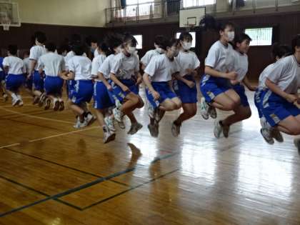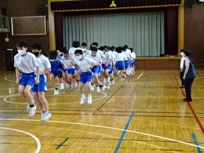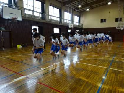 2年生の学年練習の様子です。雨のために半分ずつ体育館で行いました。他のクラスは教室で作戦会議です。