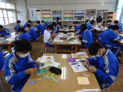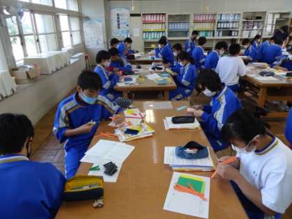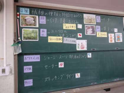 3年4組、家庭科。繊維の種類と特徴を知ろう。