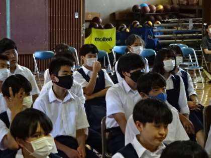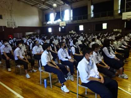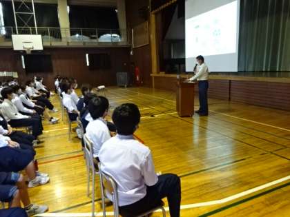 2年生の防災訓練(講話)の様子です。