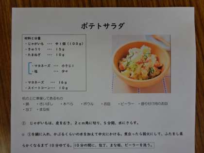 7組、家庭科、調理実習。ポテトサラダを作りました。