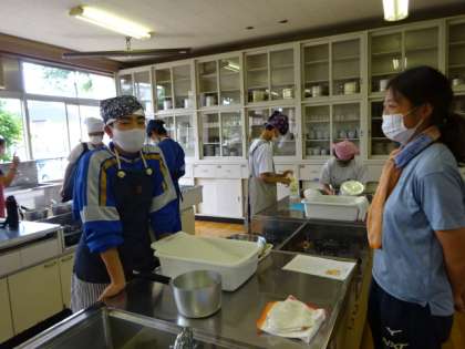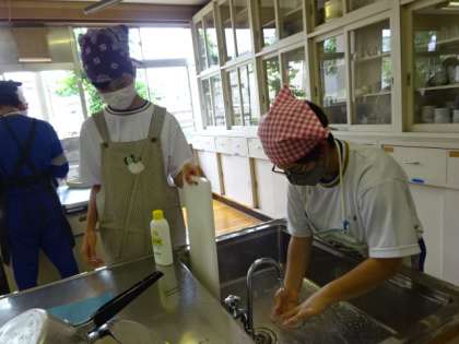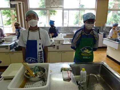 7組、家庭科、調理実習。ポテトサラダを作りました。