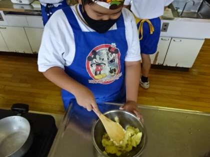 7組、家庭科、調理実習。ポテトサラダを作りました。