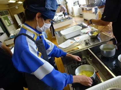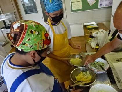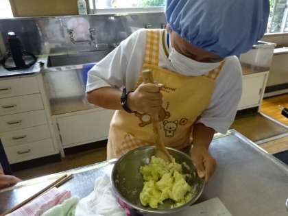 7組、家庭科、調理実習。ポテトサラダを作りました。