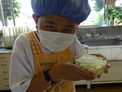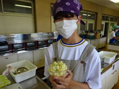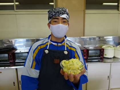 7組、家庭科、調理実習。ポテトサラダを作りました。