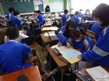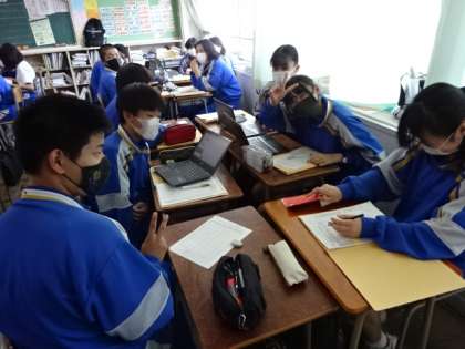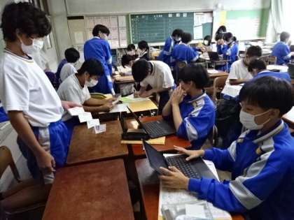 3年2組。修学旅行2日目3日目のコース決め。余裕の表情ですが……、心配です。