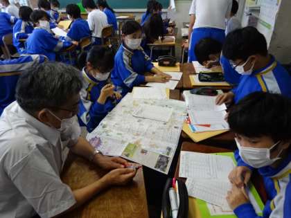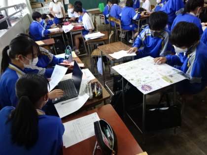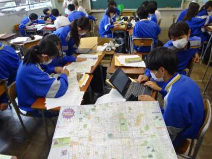 3年3組。修学旅行2日目3日目のコース決め。余裕の表情ですが……、心配です。