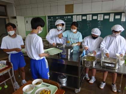 今日は夏野菜のカレーライス。どのクラスもよく食べました。7組。