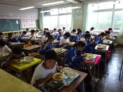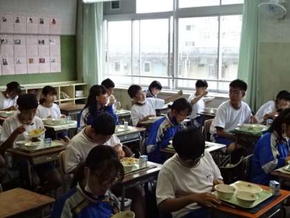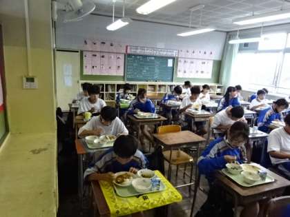 今日は夏野菜のカレーライス。どのクラスもよく食べました。1年1組。
