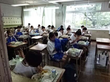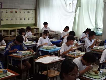 今日は夏野菜のカレーライス。どのクラスもよく食べました。1年5組。