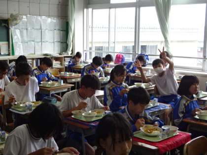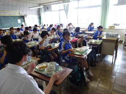 今日は夏野菜のカレーライス。どのクラスもよく食べました。2年2組。