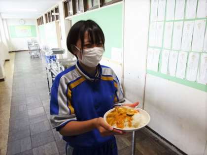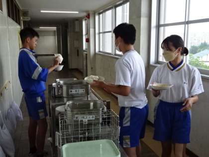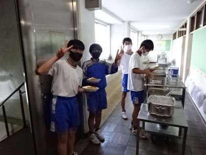 今日は夏野菜のカレーライス。どのクラスもよく食べました。2年生のお替り。