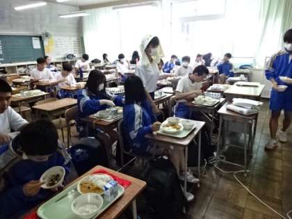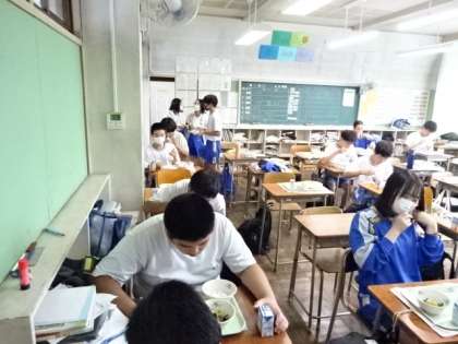 今日は夏野菜のカレーライス。どのクラスもよく食べました。3年1組。