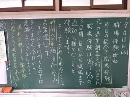 学年掲示板。学級反省(1年)職場体験始動(2年)残り少ない時間(3年)