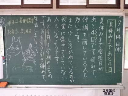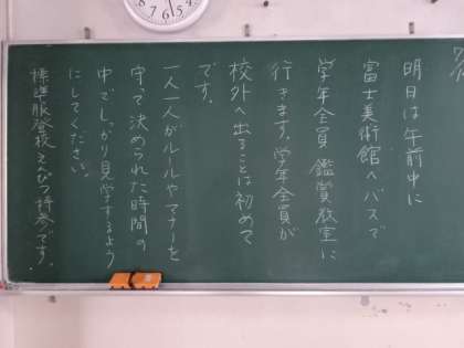 学年掲示板。明日は鑑賞教室(1年)あと4日(2年)