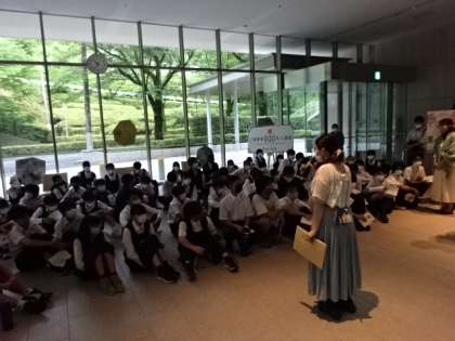 午前中、3年生と7組全員が東京富士美術館の見学に行ってきました。鑑賞前に学芸員の方から説明を聞いています。