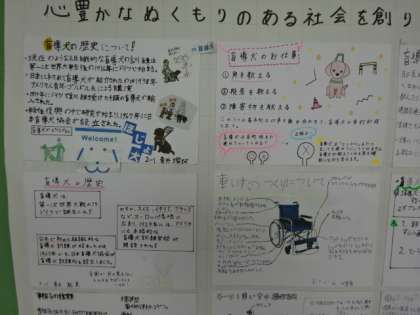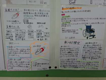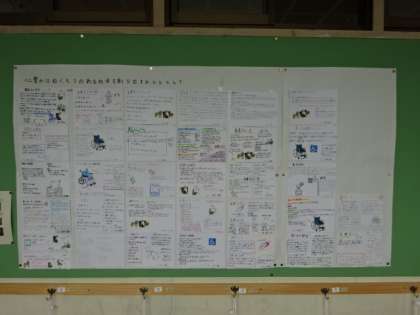 廊下に掲示してあります。今学期の福祉学習のまとめです。1組。