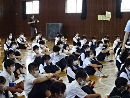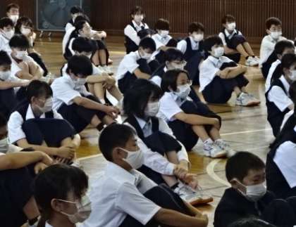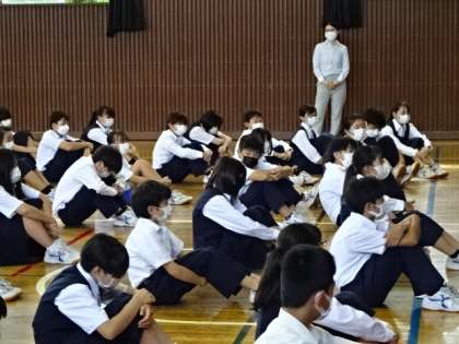 1学期のまとめ。1年生の学年集会です。