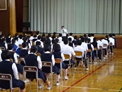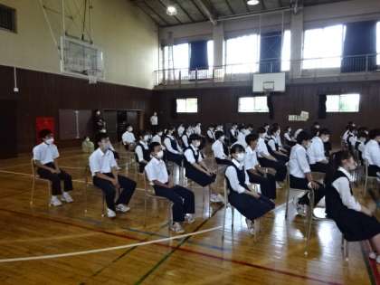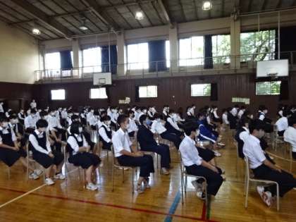 1学期のまとめ。3年生の学年集会です。