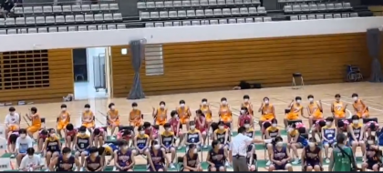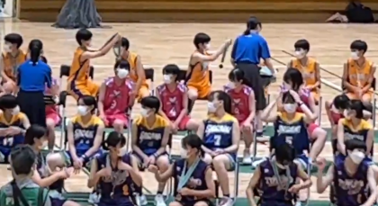 女子バスケットボール部。関東大会表彰式です。第三位、立派です。おめでとう!