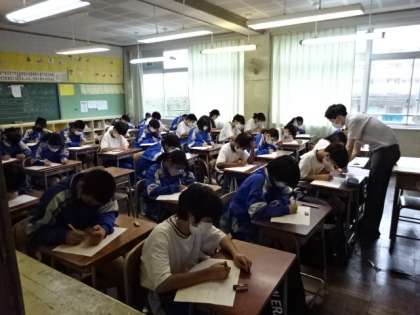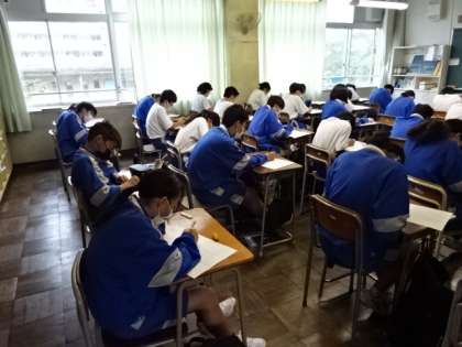 1年2組、数学。テスト中。
