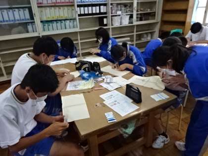 2年3組、家庭科。スウェーデン刺しゅう。
