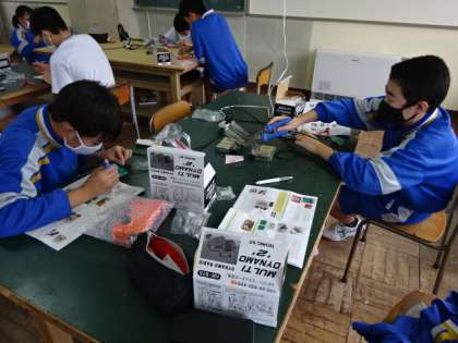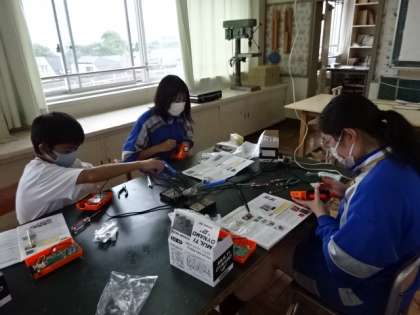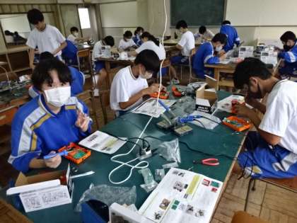 2年4組、技術。ダイナモラジオ製作。