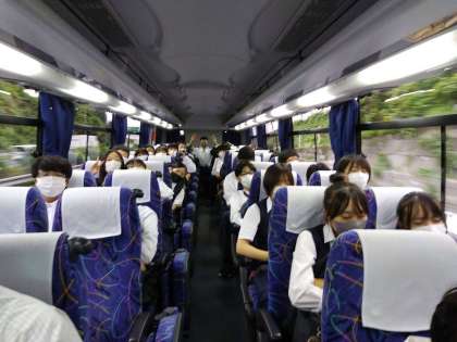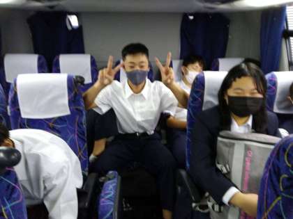 バス車内、3組。新横浜へ向かっています。